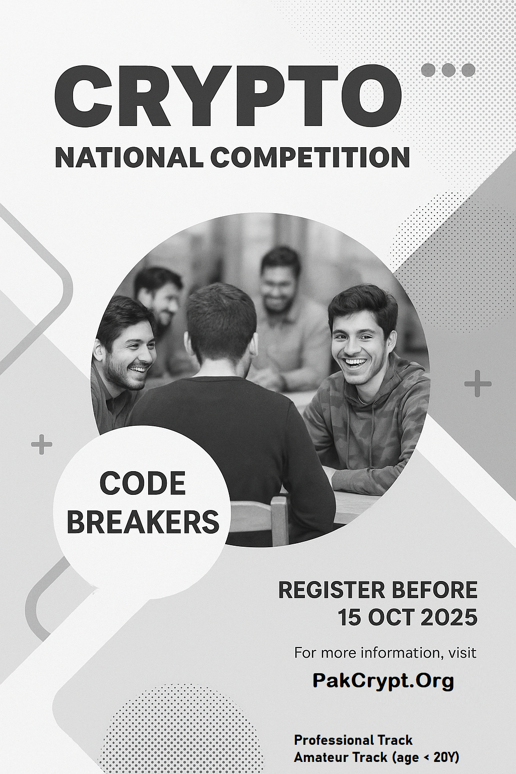 PakCrypt competition was initiated in 2022 to promote young talent in the field of cryptography. Last three events of PakCrypt from 2022 to 2024 were great success! It’s truly inspiring to see bright minds across Pakistan come together and showcase their talent in the field of cryptography.